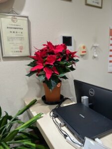この季節に待合室にポインセチアがあると、やはり華やかな気分になりますね。診療はお待たせしてしまうこともありますが、今後ともよろしくお願いいたします。