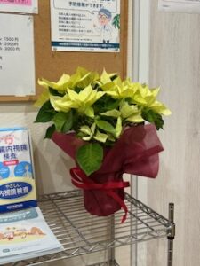 久しぶりに色違いのポインセチアがクリニックにやってきました。「枯れにくい鉢」とお願いしていたので、なかなか新しい鉢を更新できずにいました。今回はかかりつけの患者さんに送っていただき、ようやく更新できました。